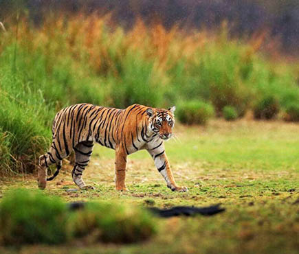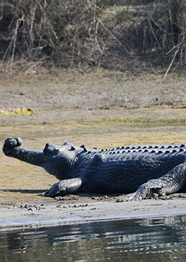 The Katarniya Ghat Wildlife Sanctuary is situated in the Upper Gangetic plain falling in the Terai of Bahraich district of Uttar Pradesh, India. The Katarniya Ghat Forest provides strategic connectivity between tiger habitats of Dudhwa and Kishanpur in India and Nepal. The sanctuary has a mosaic of Sal and Teak forests, lush grasslands, numerous swamps and wetlands. It is home to a number of endangered species including gharial, tiger, rhino, Gangetic dolphin, Swamp deer, Hispid hare, Bengal florican, the White-backed and Long-billed vultures.