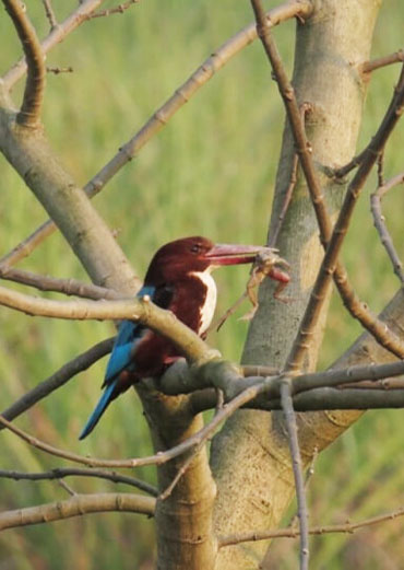 Birds- Podiceps ruficollis (Dabchick), Pelicnus philipensis (spotbilled pelican), Phalacrocorax carbo ( Large Cormorant), Phalacrocorax niger (Lillte cormorant), Ardea cinera (Grey Heron), Ciconia ciconia (White Stocrk), Ciconia nigra ( Black strock), Threskiornis aethiopica (White Ibis), Gyps indicus ( Indian Longbilled Vulture), Pandion haliatus ( Osprey), Gallus gallus ( Red jungle Fowl), Grus antigone (Sarus Crane), Amaurornis phoenicurus ( whit Breasted water hen), Ninox scutulata ( Brown Hawk owl).